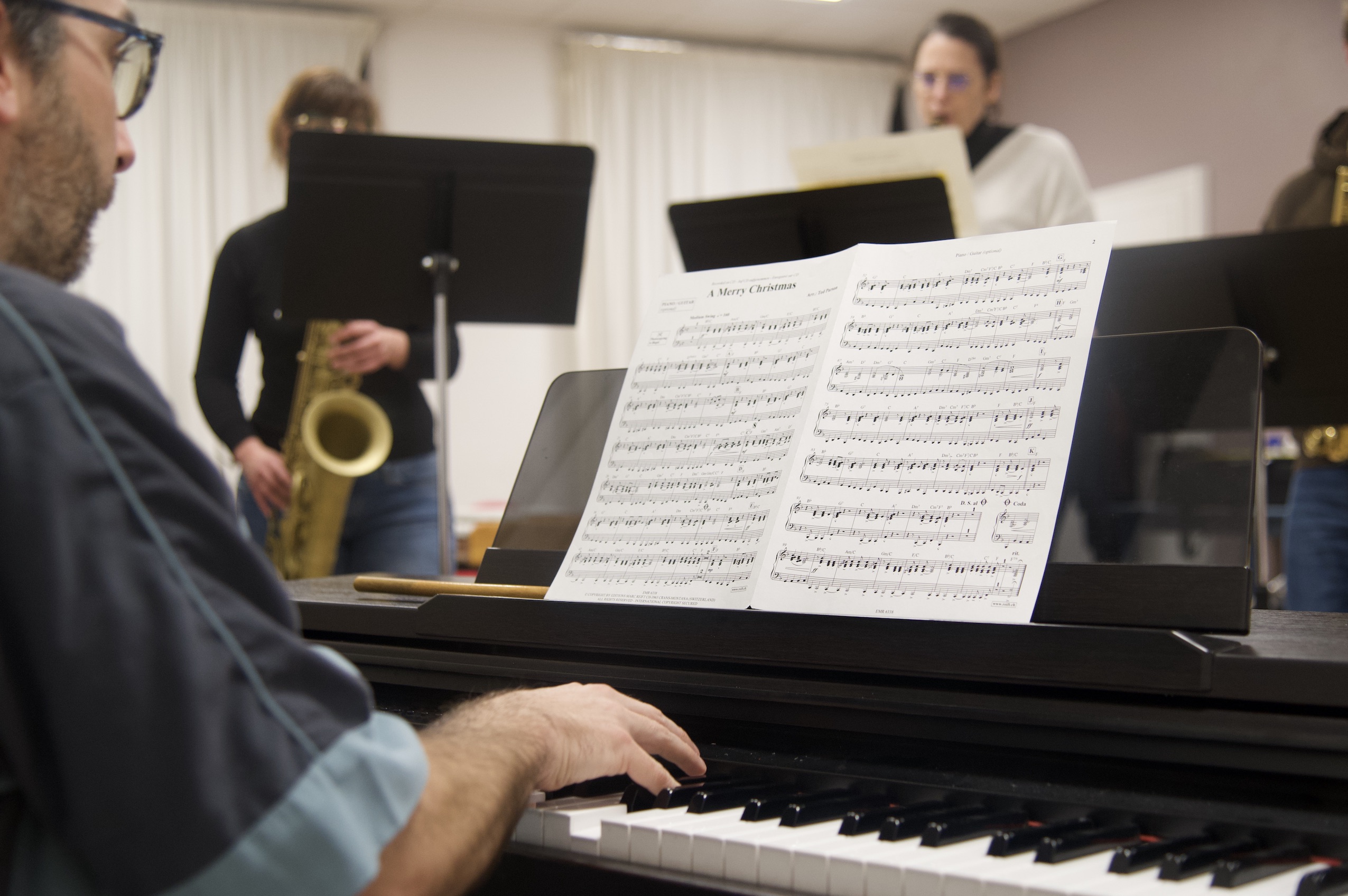 L’ensemble de jazz de l’école de musique d’Eckbolsheim répète des musiques de Noël. © Baptiste Domergue