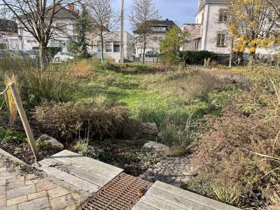 Une solution tentée à Wolfisheim. Au square du Bœuf rouge, une zone d’infiltration prend la forme d’une étendue d’herbe creuse de la taille d’un jardin. “Quand il pleut, cette cavité se remplit”, décrit Éric Heitzmann. Par petites touches, l'eau vient ensuite s’infiltrer dans les sols. En longeant la rue du Général Leclerc, au milieu du nouveau quartier, on remarque des fosses entre les immeubles : elles permettent une gestion parcellaire des eaux de pluie. José Vazquez, enseignant-chercheur à l’Engees, spécialisé dans l’assainissement, salue ces avancées : “La règle d'aujourd'hui, c’est tout sauf le tuyau. C’est le moins d'eau dans les réseaux : gérez à la parcelle, faites de la gestion intégrée de l'eau.” Pour ce professeur qui a emmené ses élèves sur le site la semaine précédente, “on n'a jamais demandé à une rivière ce qu'elle pense des rejets. La loi maintenant dit : tu es obligé de lui poser la question”. Aujourd’hui, l’objectif “c'est que l’on trouve un compromis avec la rivière : si je lui envoie un peu de pollution, elle doit être capable de se régénérer”.