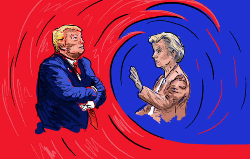 Il s'agit ici aussi d'une illustration visant à rendre un article d'analyse plus visuel. En l'occurrence, sur la question de la risposte/résistance européenne (représentée par Ursula von der Leyen) à la menace de l'augmentation des droits de douane américains (représentée par Donald Trump) en mai 2025.